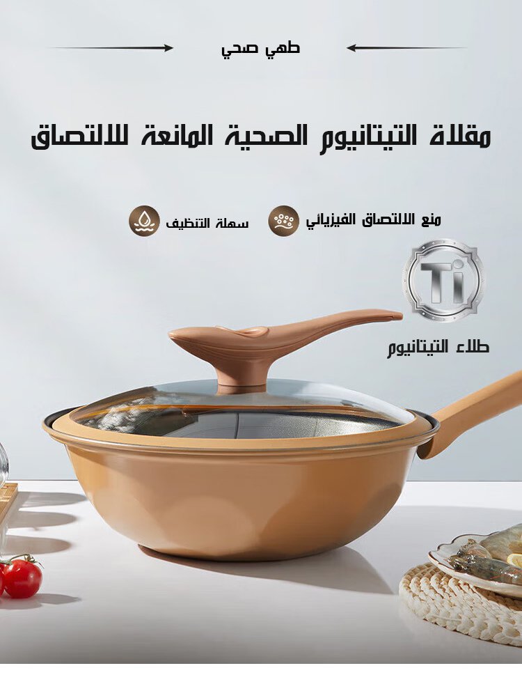 مقلاة التيتانيوم الصحية المانعة للالتصاق ذات الضغط المنخفض